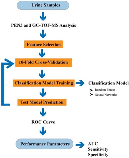 - Arasaradnam, R.P.; McFarlane, M.J.; Ryan-Fisher, C.; Westenbrink, E.; Hodges, P.; Thomas, M.G.; Chambers, S.; O’Connell, N.; Bailey, C.; Harmston, C.; et al. Detection of Colorectal Cancer (CRC) by Urinary Volatile Organic Compound Analysis. PLoS ONE 2014, 9, e108750. [Google Scholar] [CrossRef] [PubMed]