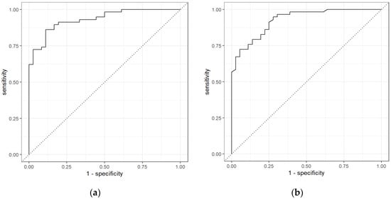 ROC for CRC vs. non-Cancerous using (a) Neural Network and (b) Random Forest classifiers for GC-TOF-MS.