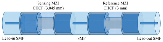 The transmission spectrum of each MZI is described by Equation (1), and these expressions can be rewritten to a similar form of the equations used in reference [20]. The interference spectra of the sensing and reference MZI are then given by