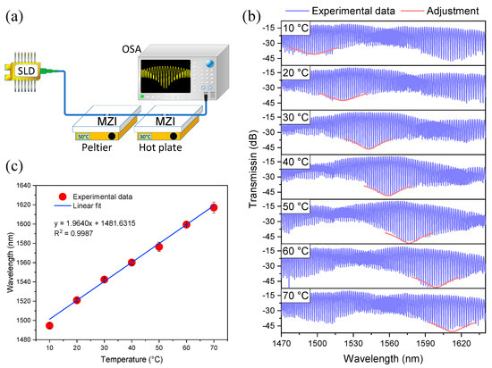 3.2. Experimental Results of a Single MZI as a Temperature Sensor