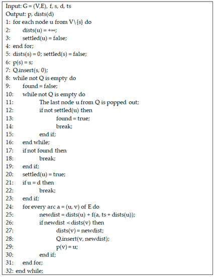 - Jigang, W.; Jin, S.; Ji, H.; Srikanthan, T. Algorithm for time-dependent shortest safe path on transportation networks. Procedia Comput. Sci. 2011, 4, 958–966. [Google Scholar] [CrossRef] [Green Version]