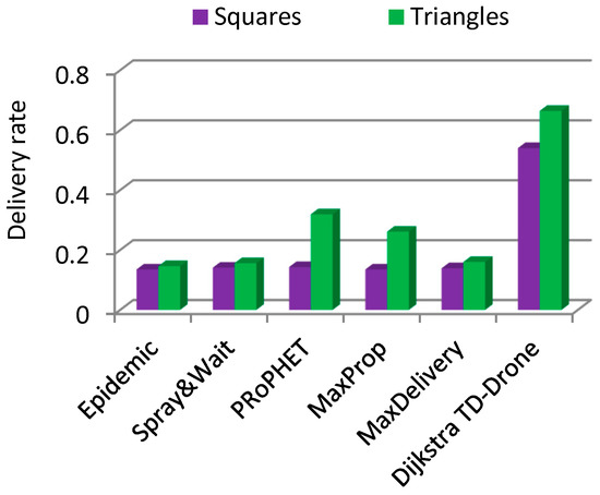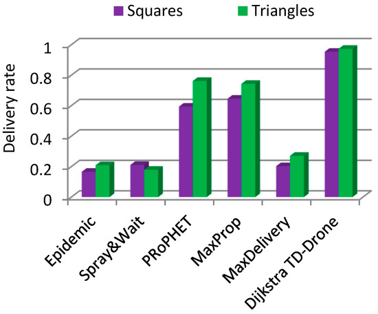 - Udroiu, R.; Deaconu, A.M.; Nanau, C.-Ş. Data Delivery in a Disaster or Quarantined Area Divided into Triangles Using DTN-Based Algorithms for Unmanned Aerial Vehicles. Sensors 2021, 21, 3572. [Google Scholar] [CrossRef] [PubMed]