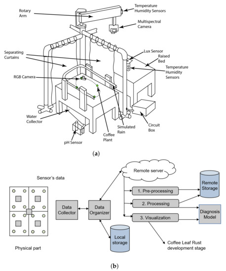 It is noteworthy that, at the beginning of this research, the general objective was oriented to the early detection of the Coffee Brown Eye Spot disease through Remote Sensing (RS) with spectral reflectance data analysis. However, after carrying out the interviews with the Colombian coffee experts and producers, we realized that the mentioned disease was not as crucial or economically limiting as the CLR. The interviewees expressed that their main concern was the CLR and most of them even reported that they have been struggling with it over the last four years. Thus, and thanks to their recommendations, we decided not only to diagnose the CLR instead of the Coffee Brown Eye Spot disease, but also to integrate Wireless Sensor Networks (WSN). In that sense, the first step towards diagnosing the disease consisted of collecting reliable data regarding its development. Thereby, once the necessary data had been collected, it would be possible to create a diagnostic model based on such data. Therefore, this research presents the following two contributions: (i) The mechatronic design of a cyber-physical data collection system to collect and store data, integrating RS and WSN; (ii) a three-month dataset for CLR detection.