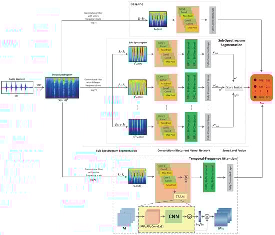 In this part, we put forward two approaches for environmental sound classification, namely sub-spectrogram segmentation and temporal-frequency attention, where an overview of them is shown in Figure 2.