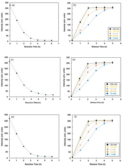 Inhibitor sugars, such as D-glucose and α-L-fucose, were used for the recovery of glycoproteins adsorbed on the lectin column. To take advantage of this phenomenon, the glycoproteins adsorbed on fluorescent magnetic beads were recovered, and the elution process was monitored by assessing the changes in fluorescence intensities with time after the addition of inhibitor sugars. Figure 5b shows the changes in fluorescence intensity with time for RNase B adsorbed on FMB-Con A after the addition of various concentrations of maltose. The fluorescence intensities increased with time due to the release of RNase B from the surface of FMB-Con A, and the release rate increased as a function of maltose concentration. As a result, this method is available for visualizing the lectin-glycoprotein interactions and releasing glycoproteins from lectins on the surface of fluorescent magnetic beads, which makes it easier to detect the reaction conditions for lectin-glycoprotein interactions.