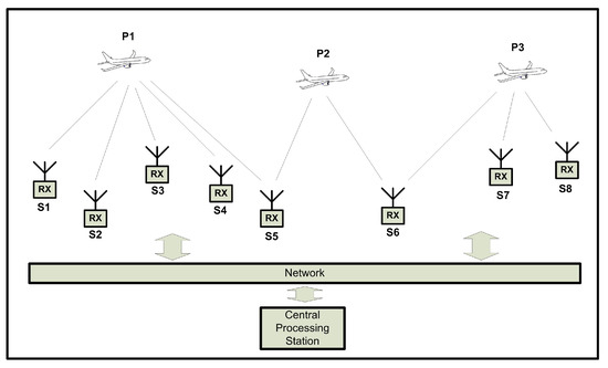 Now is predicted by the tracking filter mentioned in the previous subsection and is the unknown to be estimated. If more than three pairs of sensors are in the range of the aircraft, the corresponding equations can be used to find the airplane position. In this manner, the algorithms exploit independent pairs of sensors and do not need the network to fully synchronize.