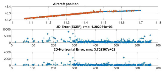 Figure 8 which shows an aircraft track and its horizontal and three-dimensional errors (w.r.t. the ADS-B data).