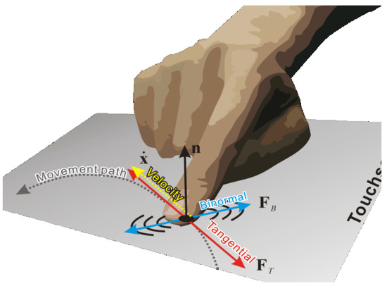 Moreover, there was a difference between sampling frequencies. In recording state, acceleration, , and the rubbing speed, , was recorded at the same time. Here, represented the position of the fingertip. We recorded the acceleration in kHz of the sampling rate. On the other hand, the rubbing speed was recorded in Hz, based on the touchscreen’s sampling rate. Moreover, the control frequency of vibration motor was kHz.