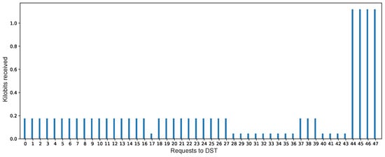 The s can also deliver, on demand and in real time, the data rate produced and received by s to the end-user. Therefore, the behavior of the s can be known by end-users in decision-making time by analyzing these data. In this case study, the prototype showed a regular data production from sensors, with a reduction and increment of the data rate. This could imply to a potential bottleneck in the reception of data or a possible inconsistent data production from sensors at IoT devices. Figure 10 shows the received data amount of 47 user requests to the s.