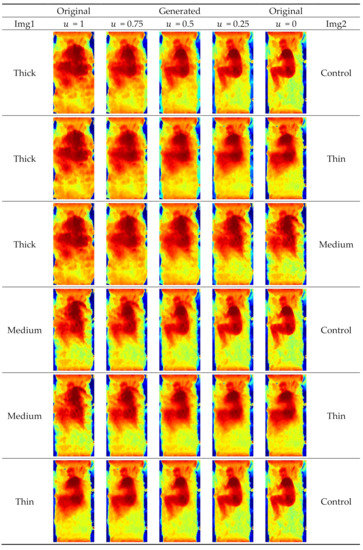 Four blanket conditions contributed to 6 possible combinations and thus 6 hypothetical blanket conditions for img1 and img2 (i.e., the 6 rows in Figure 2). For ease of understanding, we present Figure 2 to illustrate all 6 combinations of blanket pairs with 3 pre-assigned u values. It should be noted that a random u value will be assigned in every combination and in every epoch during model training.