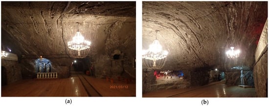 The St. Kinga chapel is located in a chamber which dates back to the 18th century. It is the largest in size of the chapels which exist in the mine and its total area size is about 260 m2. Its current design dates back to the beginning of the 20th century (Figure 3).