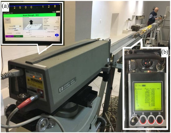 To determine the accuracy of the sonic probe extensometer control measurements were carried out at the Surveying Comparator Laboratory of the Cracow University of Science and Technology (UST AGH) using a Hewlett Packard precise laser interferometer, with an accuracy of ±0.02 mm. These measurements consisted of comparisons of the changes in the length of baselines in which the ends were defined both by the position of the reflectors for the interferometer measurements and by the magnetic anchors for the extensometer measurements (Figure 6). Considering the fact that its accuracy of distance measurements of laboratory baselines amounts to 0.02 mm, the results can be assumed as references which estimate very precisely the true value of the quantity of interest (baseline length). So it was assumed that the differences between observations are, practically, seen as a manifestation of the true errors of values indicated by the extensometer.
