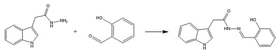 2.2. Synthesis of IH-Sal ((E)-N′-(2-hydroxybenzylidene)-2-(1H-indol-3-yl)acetohydrazide)