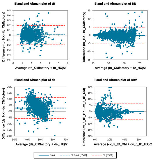 - Bland, J.M.; Altman, D.G. Applying the right statistics: Analyses of measurement studies. Ultrasound Obstet. Gynecol. Off. J. Int. Soc. Ultrasound Obstet. Gynecol. 2003, 22, 85–93. [Google Scholar] [CrossRef] [PubMed]