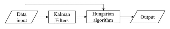 (ii) Multiple object tracking: The vehicle information in the frame can be extracted after the implementation of vehicle detection. To uniquely identify a vehicle in different frames until this object leaves the video, the multiple objects tracking algorithm should be used. That is to define the unique ID for the same vehicle in different frames. Considering the possible shadow occlusion problem when vehicles are too close to each other as well as side shadow problems caused by the sunlight, deep SORT algorithm [32] is leveraged to track the objected vehicle in different frames. Deep SORT is the most popular and one of the most widely used multiple objects tracking method, and was proved to have better performance when shadow occlusion problems are considered. The structure of the algorithm is shown in Figure 2.