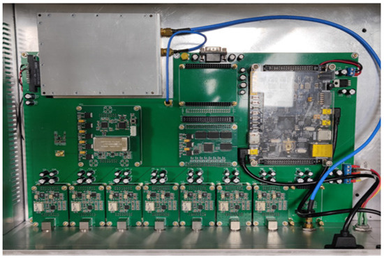 To evaluate the performance of the multi-channel digital frequency measurement method proposed in this article, a multi-channel digital frequency standard comparison prototype has been developed. The prototype consists of one calibration channel and seven measurement channels. The nominal frequency of the sinusoidal beat signal is 1 Hz, and the sampling clock of ADC is 200 kHz. Figure 6 presents the structure of the multi-channel digital frequency standard comparison prototype.