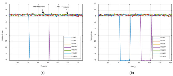 | Exit vector tracking | When the number of effective satellites (such as the CNR is larger than 23 dB·Hz) is less than 4 for a period of time, the navigation filter becomes untrusted, and the receiver exits vector tracking mode and returns to scalar tracking for a new working cycle. |