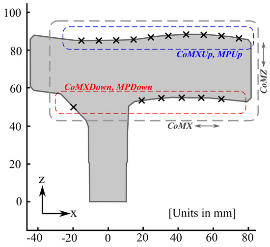 - Top side center of mass in x-axis direction:where the index i is the same as that in Table 1 and (number of FSRs on the handle top side).