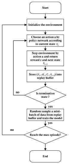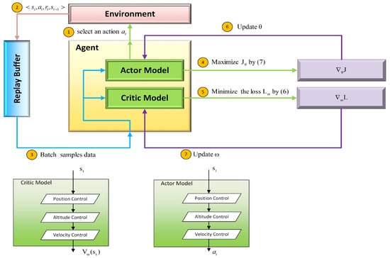 In this paper, the actor–critic RL algorithm is adapted to train the agent. The training process is: at the beginning of every training process, initialize critic network V and policy network with weights and .