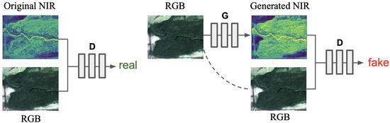 Training procedure for GAN using the RGB image as an input and the NIR band as a condition.