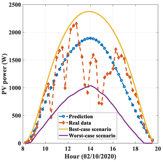 Figure 9 are used to quantify the accuracy of the prediction. However, in this case, the PV power forecast for each station is individually evaluated and the sum of power forecasts of the stations represents the PV power generated by the VPP, whose forecast error is depicted in