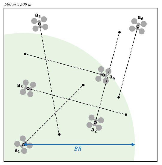 Conflict management is one of the many technical challenges to be solved in this scenario. Here, a “conflict” is understood as a situation in which two or more UAVs are at a distance less than a minimum separation predetermined by regulation. This is a classic problem in traditional Air Traffic Management (ATM) [11], where it is called Conflict Detection and Resolution (CD&R), and there are already countless resolution proposals [12,13]. In short, the aim is to avoid the occurrence of a collision between two aircraft at all costs.