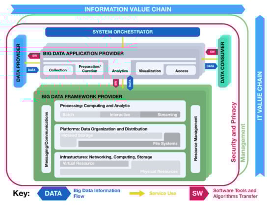 - NIST. NIST Big Data Interoperability Framework: Volume 7, Big Data Standards Roadmap. In NIST Big Data Interoperability Framework; NIST Big Data Public Working Group: Gaithersburg, MD, USA, 2018; Volume 7, p. 36. [Google Scholar] [CrossRef]