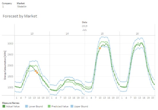 - Load Forecasting. This application seeks to predict the energy demand of customers. It has become one of the most studied since it improves the planning processes into the utilities’ operation. Some authors have used approaches, such as knowledge discovery from database methodologies (KDD) [], machine learning [,], evolutionary algorithms [,], clustering [], and deep residual networks [].
