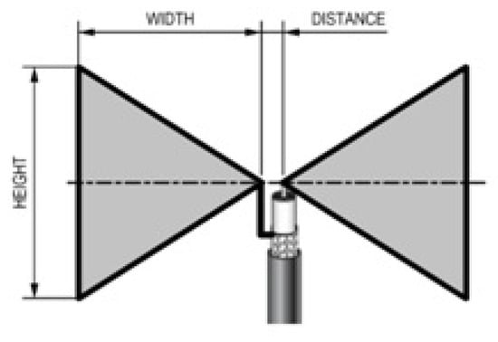 This antenna is always very handy in cases where there are wideband applications. It operates in a VHF range from 30 MHz to 300 MHz. The bandwidth of the antenna is usually greater than 10:1, and they are referred to as independent antenna. The features of this antenna, such as gain, input impedance, and radiation, changes periodically with respect to the logarithm of the frequency space. This is referred to as a log-periodic array [,]. Figure 9 demonstrates the structure of the log-periodic dipole array antenna.