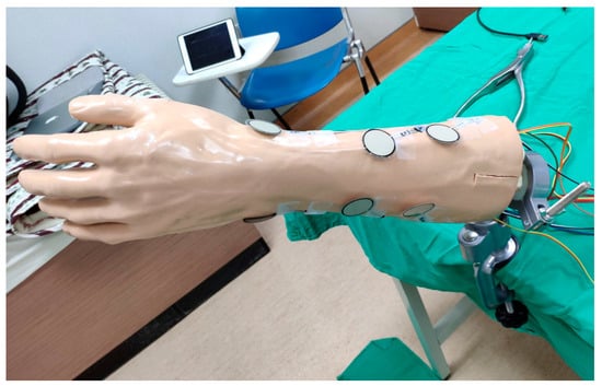 Total eight detection points were deployed on the radial and ulnar side of the simulated arm (Sawbones, Vashon Island, WA, USA). Six of them were the pressure sensors, as listed at