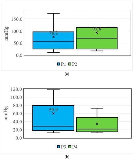 Figure 8a. On the P3 and P4 positions, the mean pressures were 59.9 mmHg and 34.6 mmHg when the sixth-year medical students applied the short arm plaster cast. The pressures were lower than P1 and P2, but still higher than the safe range, as shown in