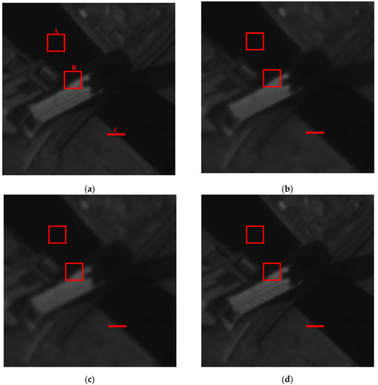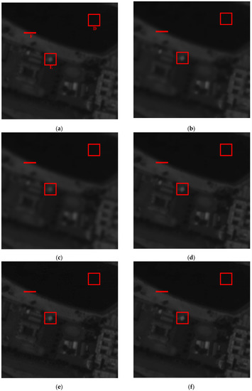 The remote sensing image is an important source for people to achieve a variety of useful information; thus, many airborne or aerospace imaging systems are developed to acquire high quality remote sensing images, which are based on photoelectric detectors with high sensitivity. The quality of the image becomes particularly important because it affects the accurate interpretation and perception of the image. Nevertheless, noise often inevitably exists in the image, and the targets are usually blurred to a certain extent due to the acquisition of the imaging system, resulting in the degradation of quality of the images [1,2,3,4]. Therefore, it makes it hard for human observers to discriminate the fine details of the images such as edges and other features.