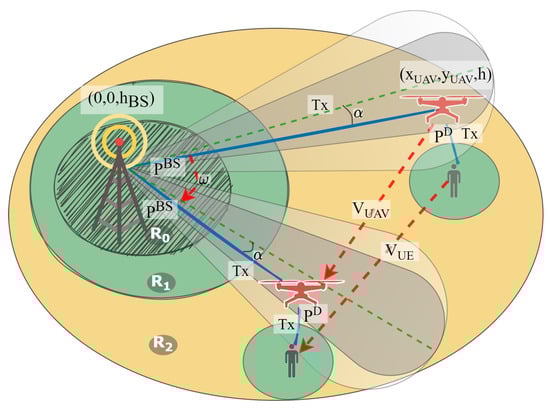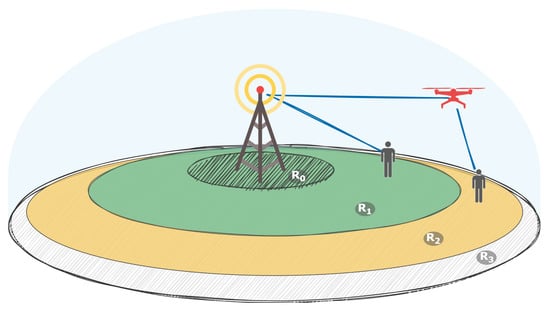 The implementation of UAVs in wireless networks for purposes of building emergency communication networks with uninterrupted network coverage and reducing the load on network sections has long attracted much attention both in scientific circles and in industry [,]. Due to their high mobility and deployment flexibility, UAVs are widely used in 5G networks.