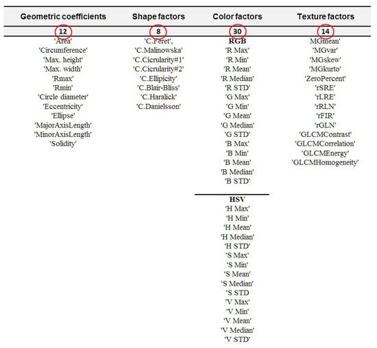 - Ramirez-Paredes, J.-P.; Hernandez-Belmonte, U.-H. Visual quality assessment of malting barley using color, shape and texture descriptors. Comput. Electron. Agric. 2020, 168, 105110. [Google Scholar] [CrossRef]