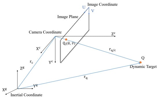Figure 1 depicts the kinematics of a dynamic target and a camera fixed on a UAV, and the superscript and the subscript C denote the inertial frame and the camera frame, respectively. The vector between the target and the camera can be expressed as