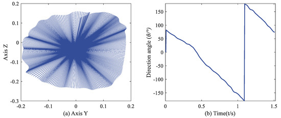 After obtaining the linear acceleration vector and its projection on the principal plane, their quadrant angle θ can be defined as in Equation (11).