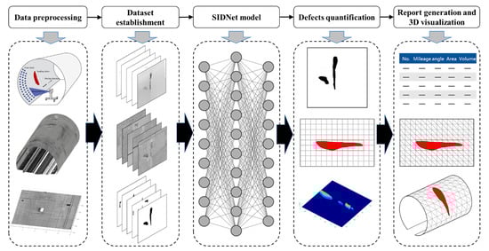 Schematic workflow of the proposed method for spalling defects inspection.