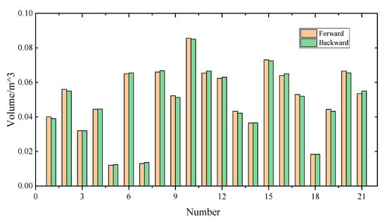 Comparison results of volume calculation from forward and backward measurements.
