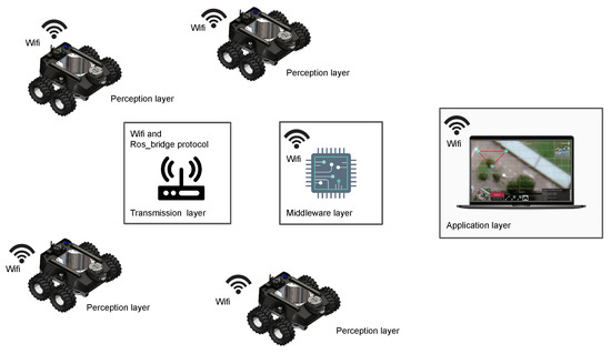 Raptor is designed to be teleoperated by users through mobile or laptop applications connected to the same network as the ROS master. This multi-device compatible Graphical User Interface (GUI) application is developed using Unity 2019.4, a cross-platform engine for developing graphical programs. The communication between robot and control devices happens via a Message Queuing Telemetry Transport (MQTT) bridge through ROS. In the communication protocol, ROS messages are serialized by JavaScript Object Notation (JSON) for MQTT communication and deserialized back for ROS messages. As shown in Figure 7, the GUI counsel has a provision for video feed and control buttons that equip basic navigation operations based on the visual input through the camera feed from the robot. The user can also choose to navigate along a drain autonomously. In this regard, the user activates the drain following functionality through the GUI. In that case, the proposed fuzzy logic controller (explained in Section 3) is activated, and the robot can autonomously move along the drain while maintaining its position in the middle. This autonomous behaviour avoids the overhead for the operator where the users have to perform teleoperation only for supervisory control actions such as pausing, stopping, and changing the direction required for returning, careful inspections of vigilant locations, in a junction of a drain, and unforeseen events. A 2D Lidar sensor is used for perceiving the environment to ensure obstacle detection and avoidance. An additional safety layer is added to avoid unintentional obstacle collision due to the carelessness of the operator. Measurements of wheel encoders in combination with the Inertial Measurement Unit (IMU) are used for the position and heading angle estimation. This method provides a reliable localization for Raptor.
