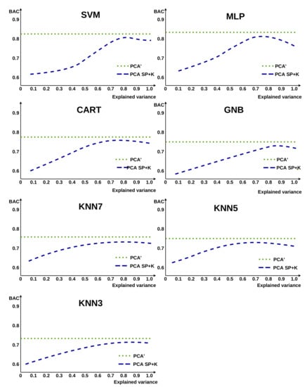RQ2: How does the developed method work against the quality of the classification obtained by different base classifiers for different levels of explained variance?