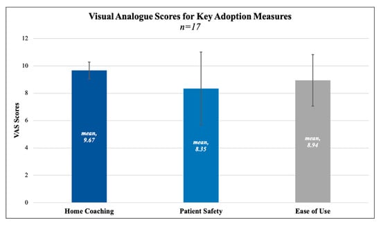 Visual Analogue Scores for Home Coaching, Patient Safety, and Ease of Use. For Home Coaching, 10 represented “perfectly satisfied”; for Patient Safety, 10 represented “extremely likely” that the protocol would improve patient safety; for Ease of Use, 10 represented “perfectly satisfied”.