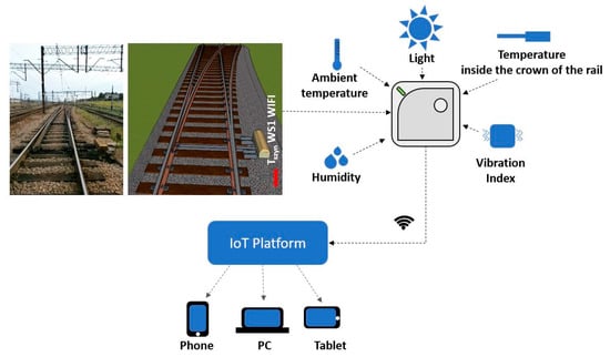 Many of the existing fault-diagnosis methods cannot realize real-time updating or deal with new fault types [20]. Ou, D. et al. [20] note that due to its complicated mechanical and electrical structure, exposure to the outdoor environment and the need to be frequently pulled, the turnout is more prone to failure. Conducting research on the automation of turnout condition monitoring methods is very important not only to improve the safety and reliability of railroad traffic but also to reduce maintenance costs [21,22]. The concept of using an innovative solution for monitoring the condition of temperature and other atmospheric conditions is a response to the need to automate the procedure of controlling the technical condition of turnouts.