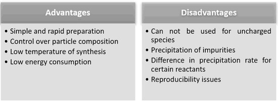 Advantages and disadvantages of co-precipitation method.