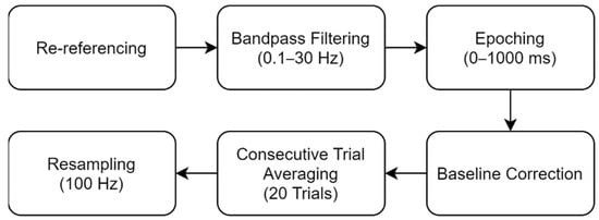 - Consecutive Trial Averaging: to improve the signal-to-noise ratio (SNR), segmented epochs were averaged continuously by 20 epochs.