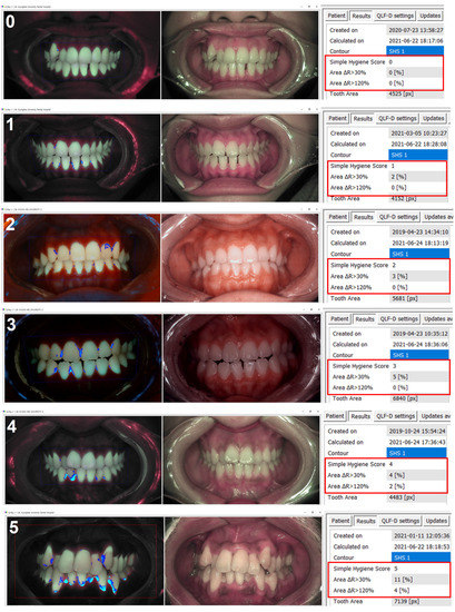 - Park, S.W.; Kahharova, D.; Lee, J.Y.; Lee, E.S.; de Josselin de Jong, E.; Khudanov, B.; Kim, B.I. Clinical assessment of an automated fluorescent plaque index scoring with quantitative light-induced fluorescence. Photodiagnosis Photodyn. Ther. 2020, 32, 102011. [Google Scholar] [CrossRef] [PubMed]