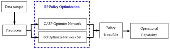 In the ensemble learning network, each agent optimizes the BP neural network based on search policy and gradient policy. The policy optimization ensemble learning algorithm uses the weighted average method and the policy to construct the equipment capability assessment network.