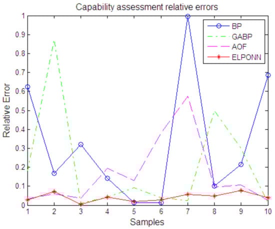 In order to compare the performance of the algorithm intuitively, the capability assessment relative errors by each algorithm are shown in