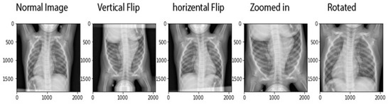 The methodology adopted for transfer learning for the detection and classification of COVID-19 is depicted in Figure 3. The primary objective was to classify a chest X-ray image into two categories, i.e., normal and COVID-19. The two main stages involved in the model were the preprocessing stage (which further included normalization and data augmentation) and the classification stage (which involved the use of transfer learning on pre-trained models and prediction). A normalization range of 0 to 1 was used. The images were rescaled by multiplying each pixel with a factor of 1/255. Moreover, the images were augmented by the following: (1) rotation at 40 degrees, (2) height, width, and zoom range scaling, and (3) horizontal flipping and vertical flipping. The data augmentation performed on the training images is shown in Figure 4. A sample of the results obtained after the data augmentation is depicted in Figure 5.