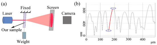 (a) Experimental setup for the observation of the diffused laser spot. (b) Cross-sectional profile of the self-wrinkle.