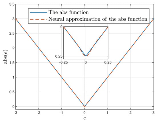 for all . In order to obtain a differentiable approximation of the absolute value function, the neural network of a Multi Layer Perceptron (MLP) type is used [65]. The network has two layers, the first of which (the hidden one) is nonlinear, and a linear output. It is defined by the following equation: